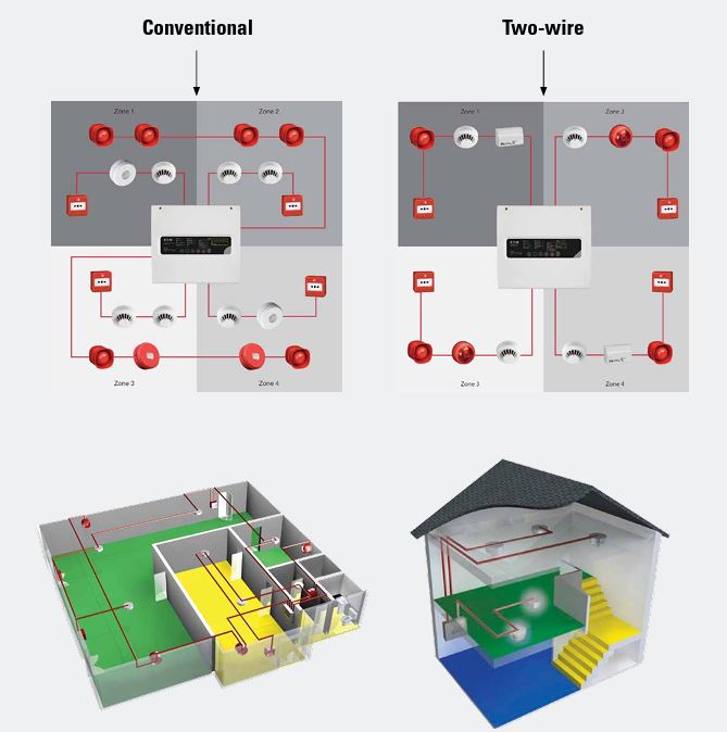 Choose from conventional or two-wire systems to suit the project in hand – a process made less daunting by this easy-to-read guide. The building you’re working on may already have an old, conventional fire system installed that you may need to upgrade or extend. How can you best do this efficiently – saving yourself both time and money, complying with regulations, and finding and installing compatible panels and devices? We can help you select a conventional or two-wire system to match your needs, as well as guide you through the relevant regulations.